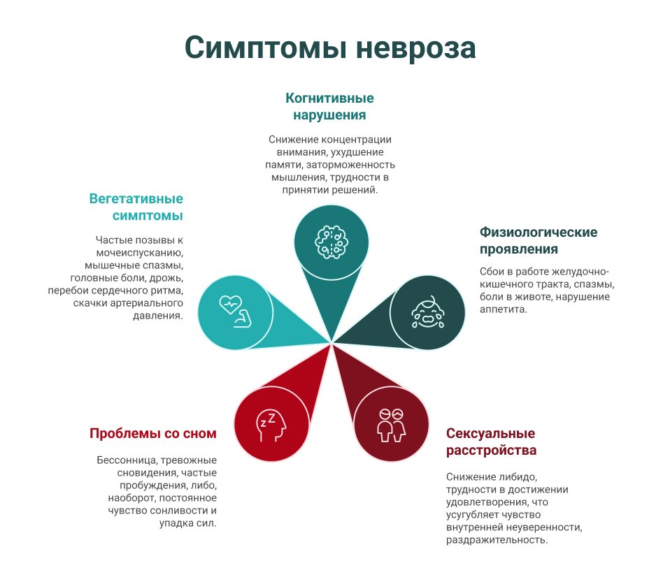 «Симптомы невроза — от тревоги до болей в теле — являются сигналом эмоционального перенапряжения. В клинике в Дудинке мы помогаем пациентам найти истинную причину внутреннего конфликта и устранить ее без пожизненного приема таблеток.